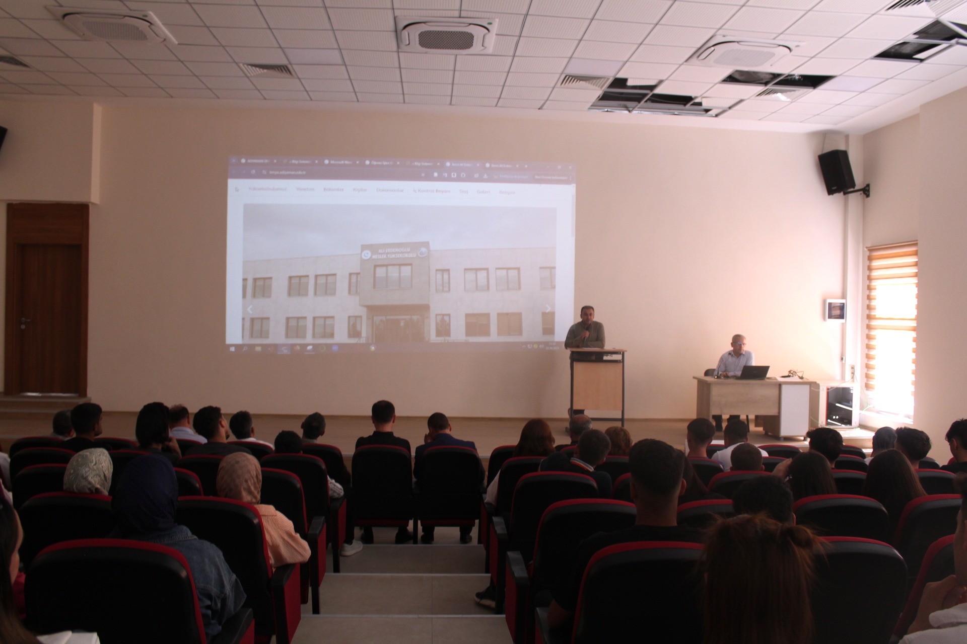 Meslek Yüksekokulumuza kayıt yaptıran öğrencilerimize yönelik üniversitenin akademik, idari, sosyal ve kültürel işleyişi hakkında bilgi sahibi olmaları ve üniversiteye uyum sağlamaları amacıyla "Tanışma ve Uyum (Oryantasyon) Programı" gerçekleştirilmiştir. Yüksekokulumuz Müdürü Doç. Dr. Mert ÖZGÜNER başkanlığında oryantasyon programımız yapılmıştır.
